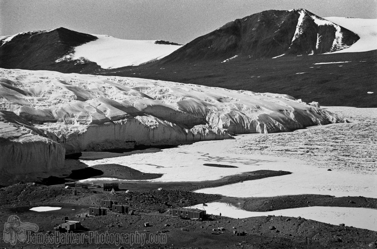 The Barne Glacier sweeps down the slopes of Mt. Erebus and ends at McMurdo Sound.