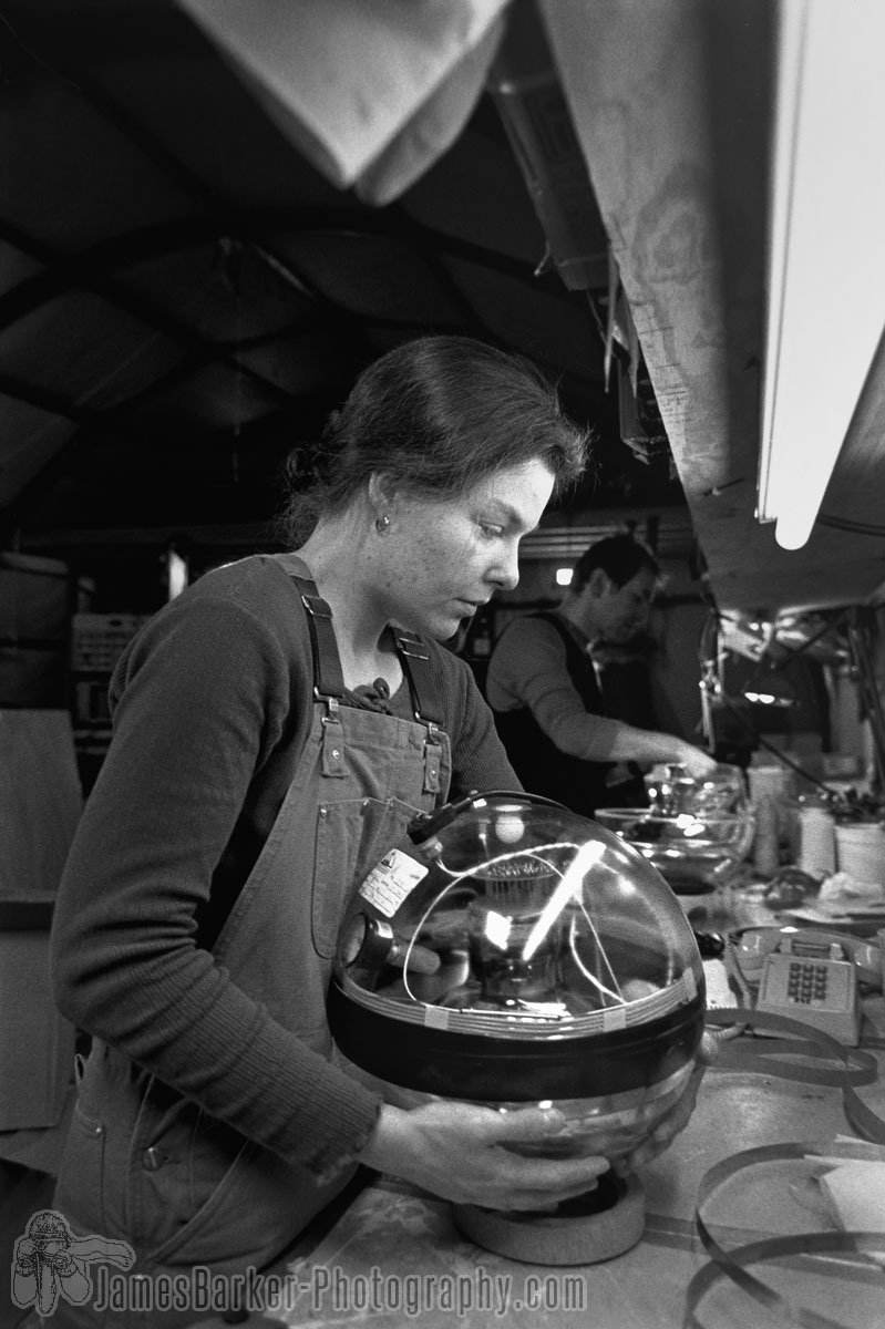 Eva Dahlberg of Sweden seals up an AMANDA Project photo multiplier. Strings of these multipliers will be sunk over a mile into the ice to detect neutrinos passing through the earth.