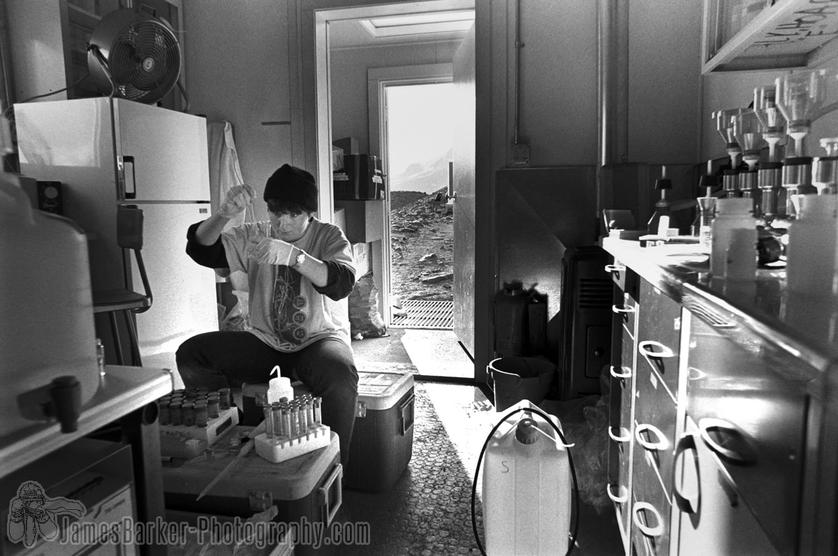 Limnology is the study of fresh water lakes. Surprisingly, Antarctic lakes in the dry valleys are warmest at the bottom. This Limnologist prepares water samples.8881
