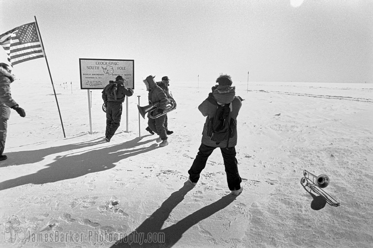 Near Christmas a Navy quintet hitches a ride to the pole to play a quick concert of carols while the plane is unloading. It’s a struggle to play wind instruments at that altitude but they really had to see the pole.