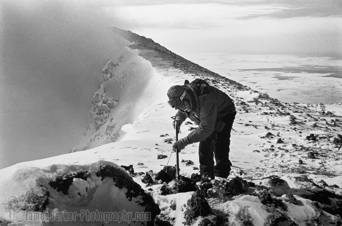 "In 1984 the seismometers on the mountain were going wild. People on the other side of the Sound could see the bombs flying through the air in the night. Within thirty minutes after arriving on The Ice I was standing by the upper hut on Erebus. I walked just a few feet from the helicopter and there sitting on the ground was a lava bomb six feet across, smoldering. I jumped in the helo and said, ’Let’s get the hell out of here!’"