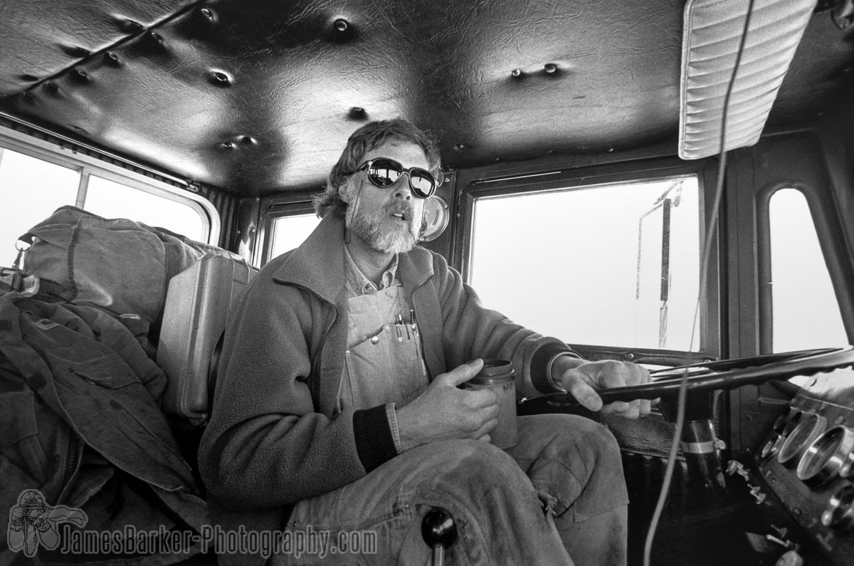 "We come in on Winfly in late August and look at the cracks in the ice and lay out the best routes we can. Then we mark it with flags and program the route on our GPS units. We often get into bad weather out here. Sometimes we don’t even bother to clear the windshields. We just follow the GPS and watch the flags go by."
