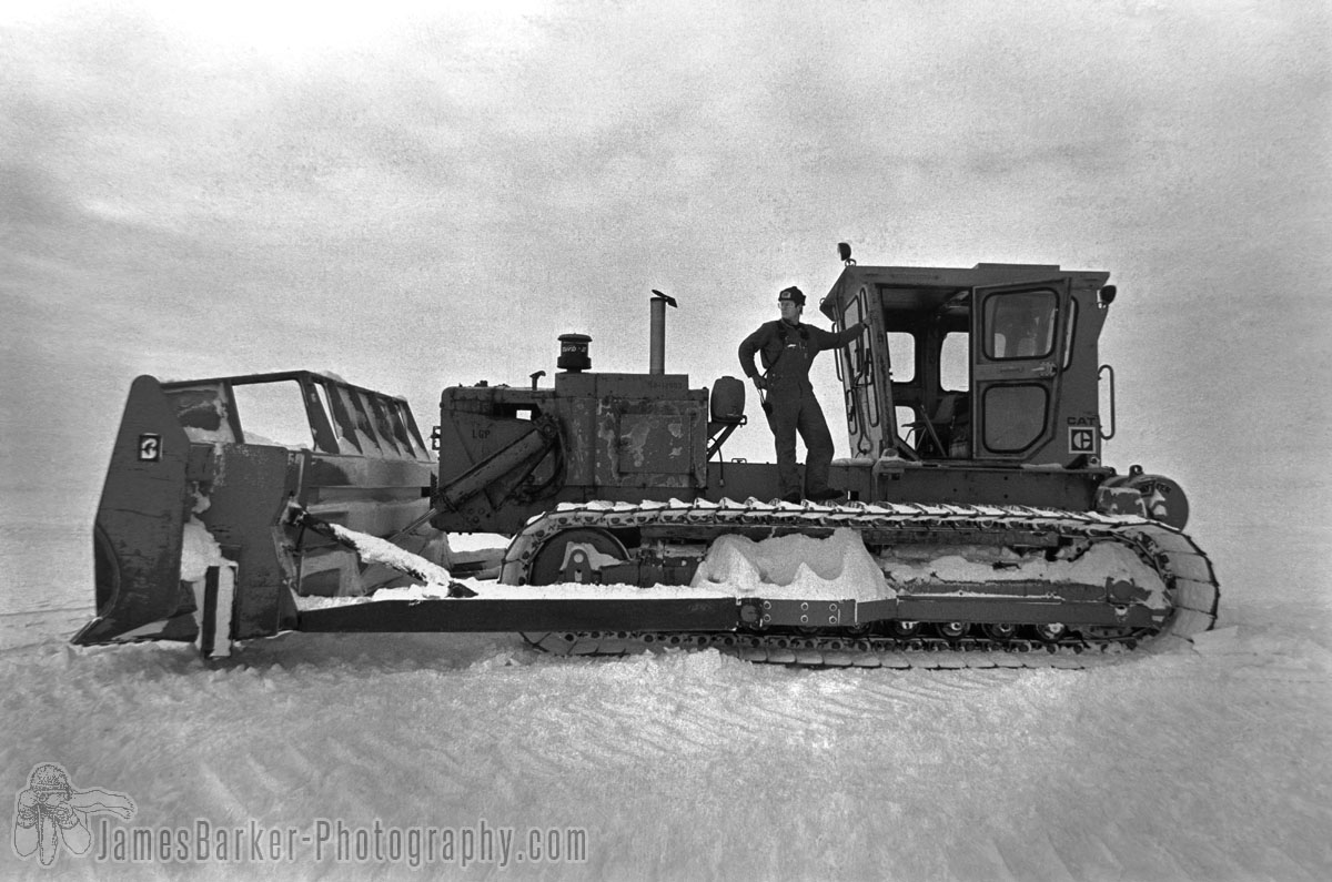 John Wright, leader of a truck convoy, makes a "traverse" over the sea ice 60 miles from McMurdo Station to Marble Point.